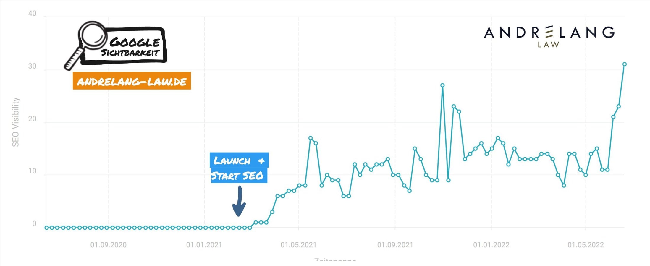 Bei Andrelang Law zeigt sich, wie effektiv Rankings aufgebaut werden können, wenn Agentur und Kunde als Team zusammenarbeiten. Herr Andrelang bringt als Rechtsanwalt die Expertise, wir das SEO Fachwissen.